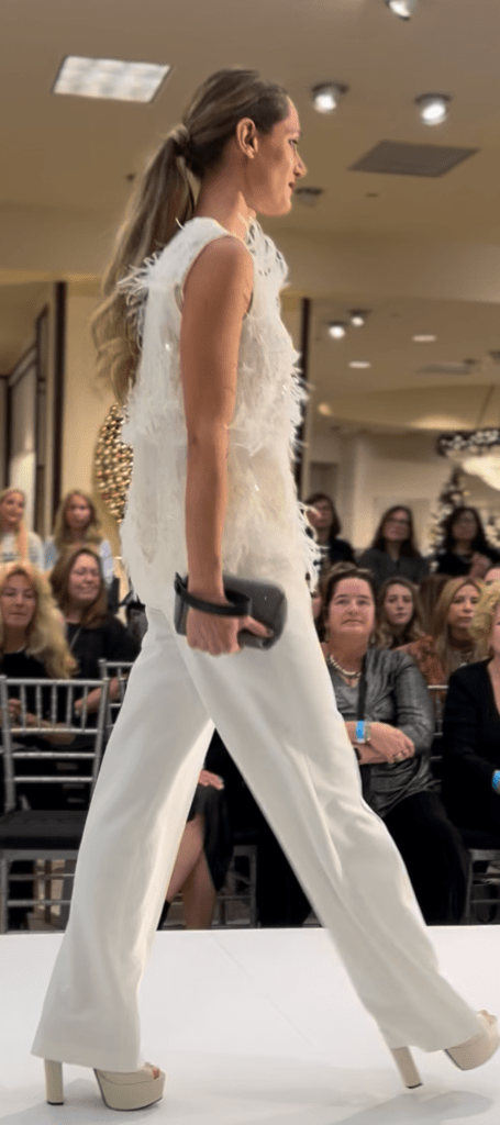 WHITE CHRISTMAS: Bruno Cucinelli top & Milly white silk pants, both at neimanmarcus.com
