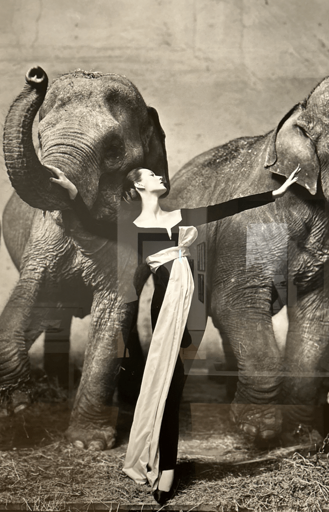 FOREVER FABULOUS: One of Alexey Brodovitch’s first art deco covers for Harper’s Bazaar, still completely of-the-moment; the iconic Richard Avedon photo of the model Dovima with elephants, her Dior gown also completely of-the-moment, then & now