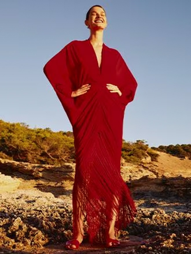 LOOKING SO 60’S–ISH, COOL & CLASSIC AT ONCE: Red Sivia Tcherassi dress at saks.com; ivory Tamara vest & Komi pant at veronicabeard.com; ivory Autumn Cashmere tunic & silk pants at bergdorfgoodman.com—so something Babe would wear!