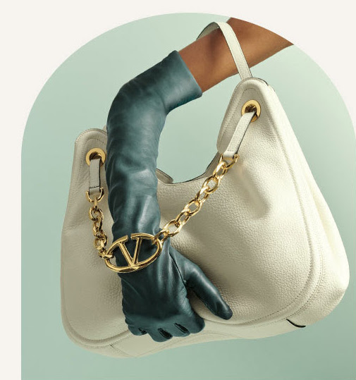 BAG IT: Pale blue Bottega Veneta & white Valentino handbags, both at neimanmarcus.com; the new jeweled version of the iconic “Jackie” bag (if I could buy one new thing, this would be it!), at gucci.com