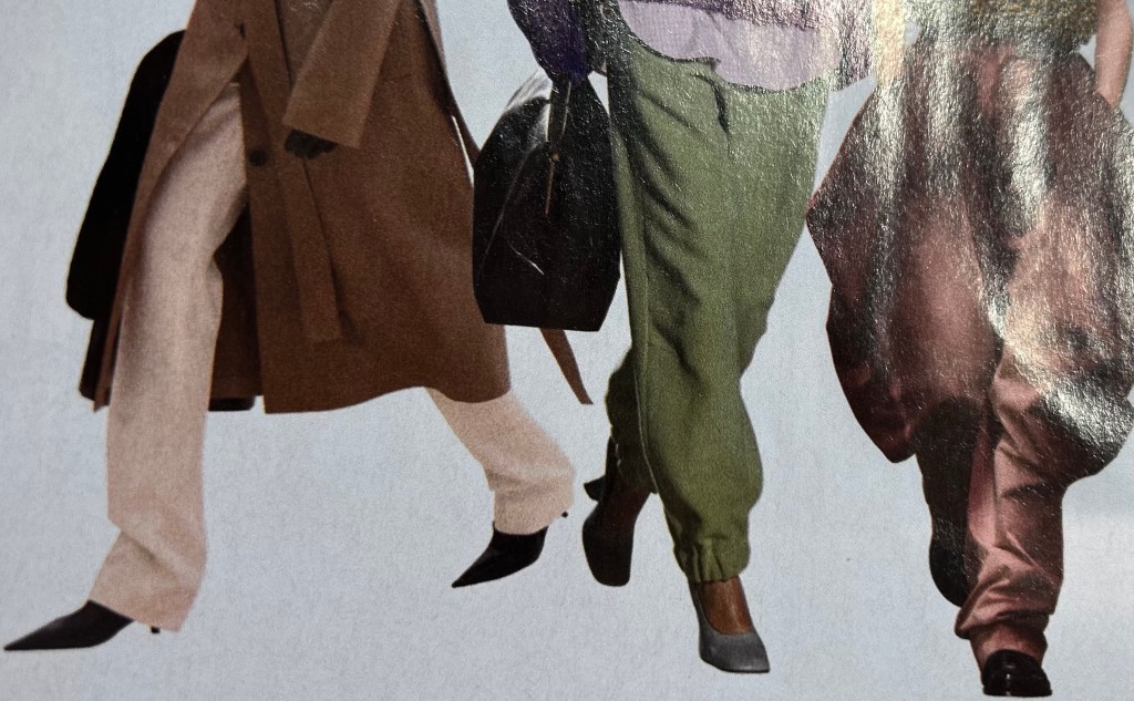 It’s pants chaos out there. And frankly, tough to build a wardrobe around them. Designers showed every silhouette from super-wide to skinny to stovepipe. Jodhpurs to harem pants. High-waisted to low-slung. Are you seeing a trend?
