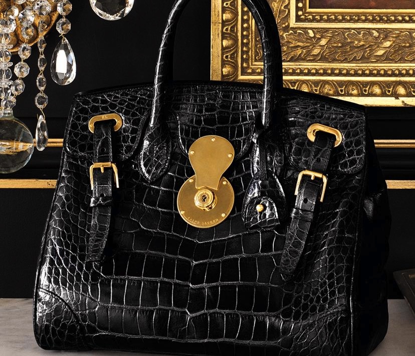 MY FOREVER FAVORITE “HOLDS EVERYTHING” BAG: My cognac-colored Ricky bag, now 18 years old & more luscious & worn than ever; this year’s “beat-up chic” version from Ralph Lauren’s Holiday Collection; the ultimate “Ricky,” in black crocodile, all at ralphlauren.com