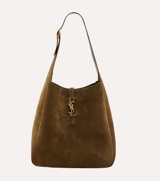 THE BIGGER THE BETTER: Chocolate brown boxy bag at fendi.com; YSL suede hobo bag at neimanmarcus.com