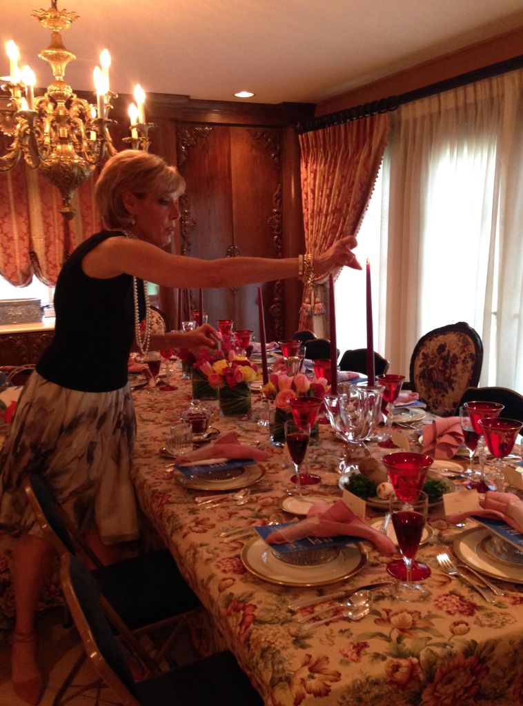 SETTING MY TABLE IS LIKE GETTING DRESSED, WHICH DISHES, WHICH GLASSES: Lighting my candles before guests sit down for dinner; renown hostess Aerin Lauder—I have all of her entertaining books—lighting candles on her holiday table