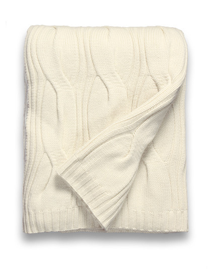 4. SOMETHING COZY: Sofia Cashmere ivory throw from neimanmarcus.com; pink velour hoodie-footie from pajamagram.com