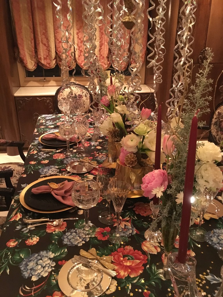 That said, as soon as someone hands me the first glass of champagne, I’m in the spirit to party! I am fortunate to spend New Year’s with wonderful friends, rotating houses each year so no one needs to drive far—and of course once it’s decided who will host, I begin to think of what I’ll wear and, even more fun, how I’ll do my table if hosting.