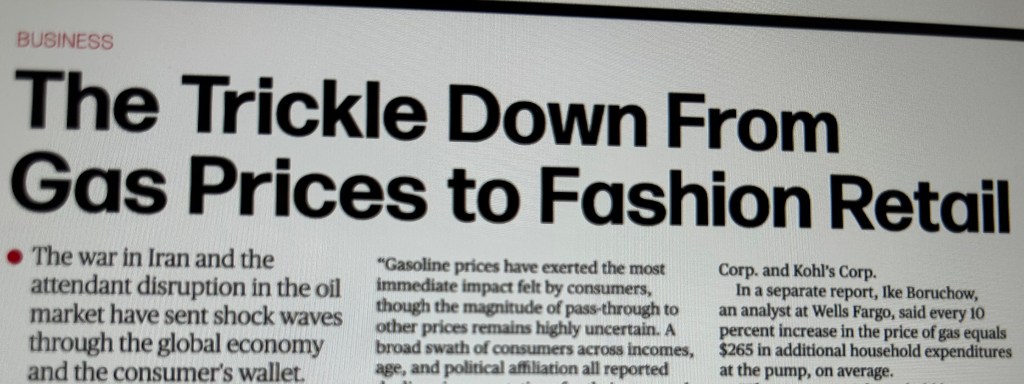 Whatever your politics, economic markets are in a spin; oil prices & tariffs affect us all. Clothing, handbags, shoes, make-up—at every price point—becomes crazy-expensive. Fashion reacts.